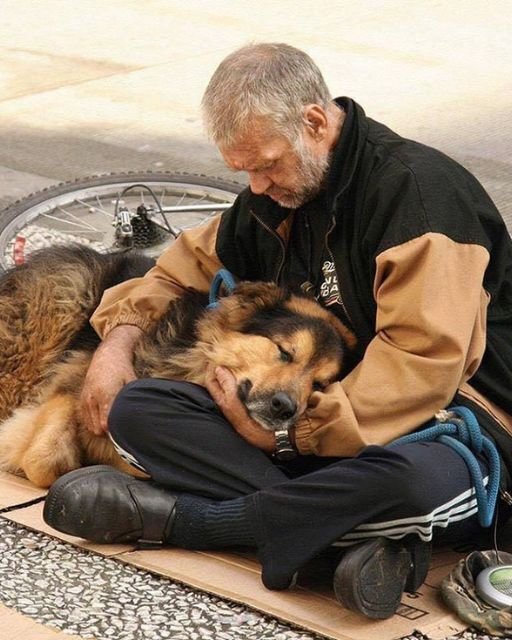 I hadn’t planned to stop that day. I was behind schedule, juggling work calls and unread messages about a meeting I’d already forgotten. The winter air stung through my gloves as I turned the corner by 8th and Marshall, passing the same old pharmacy I always ignored. And there they were again—man and dog—right where I’d seen them so many times before. The man sat quietly, wrapped in a too-small brown jacket, sleeves riding up over thin, pale wrists. His dog, a black-and-white mutt with a face full of stories, lay curled in his lap, eyes half-closed, like he trusted the world only because he trusted that man.