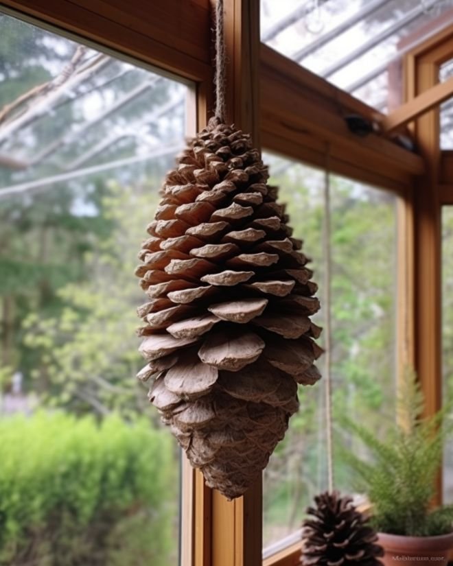 Next, attach a string or thread to the base of the pine cone, ensuring it is secure. The length of the string can vary, but it should be long enough to suspend the pine cone freely. Ideally, find a spot outdoors, such as a porch or a tree branch, where the pine cone can hang undisturbed.