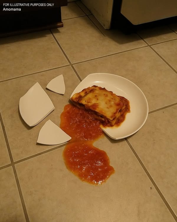 He dragged the pan to the floor and hurled it against the tile. The oven‑baked layers exploded in a red‑rifted wave across the floor. Glass and ceramic shards cracked under the weight of dripping cheese and sauce.