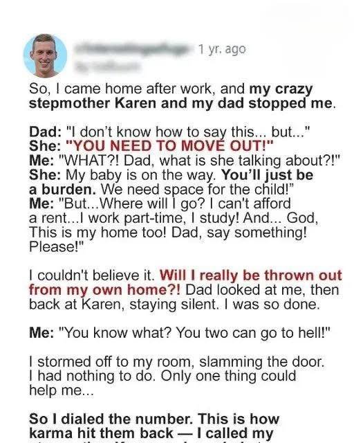 College student Marcus, 19, returned home from his part-time job, only to be told by his stepmother, Karen, to move out in three days to prepare for a new baby.