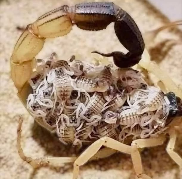 In the wild, a mother scorpion embodies one of the most heartbreaking examples of selfless sacrifice in nature. As she carries her tiny babies on her back, she endures every hardship to ensure their survival.
