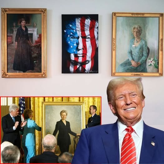 The White House hung an unusual new painting of President Donald Trump in recent days on the wall where Hillary Clinton’s portrait had been.